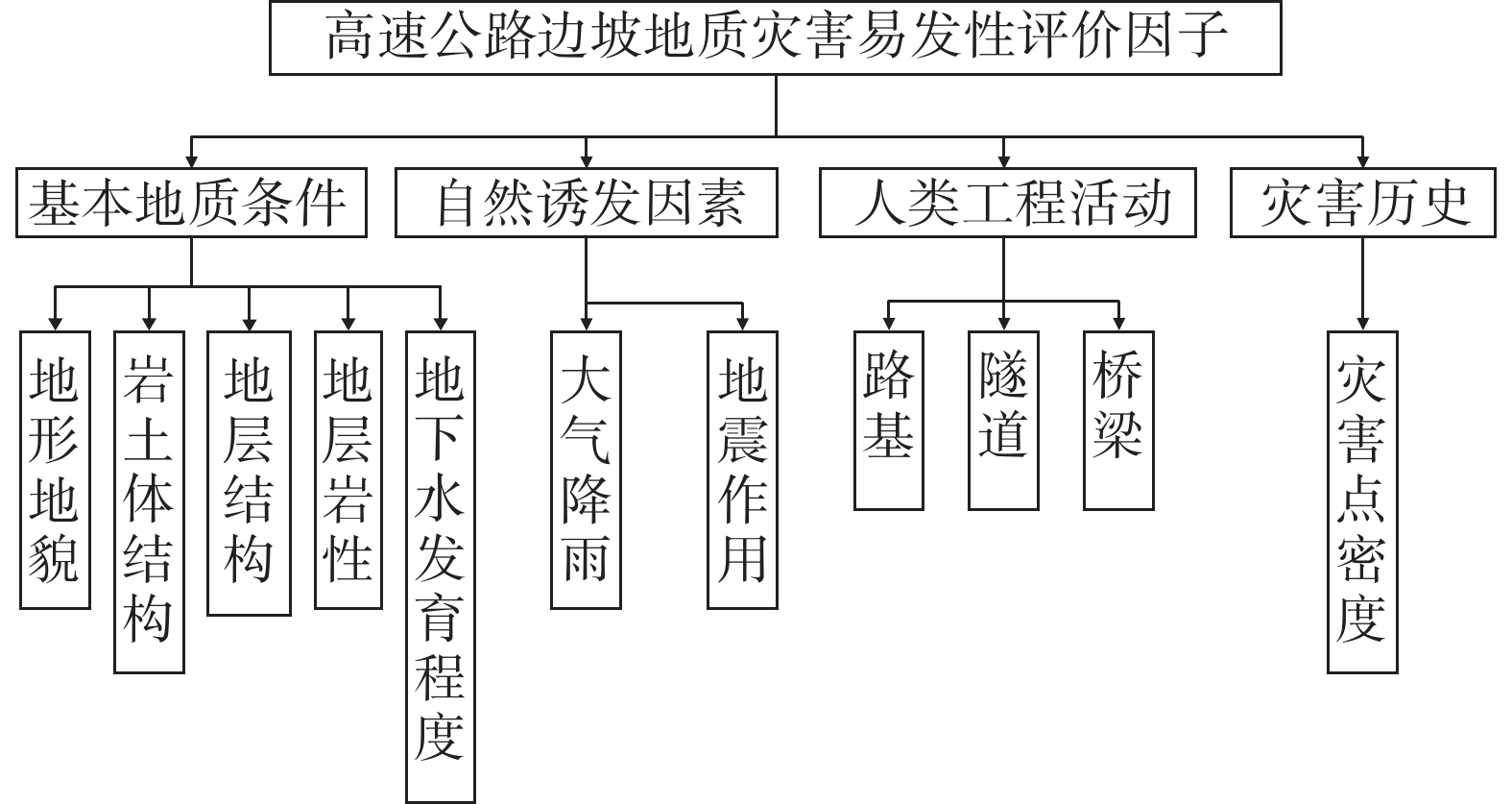Focus on theslope geological hazard of Xiangli expressway, systematic study was carried out to find the main types, development characteristics and distribution of slope geological hazards on the basis of detailed road engineering survey.A complete information evaluation index of linear engineering of expressway, including basic geological conditions, natural induced factors, human engineering activities and historical records of slope disasters, was put forward. The susceptibility evaluation model of slope geological hazards of linear engineering was established through the combination of Analytic Hierarchy Process (AHP), expert investigation method and factor accumulation method. The susceptibility zoning of the slope geological hazards in Xiangli expressway was completed, in terms of the GIS platform, which provided an important basis for the risk evaluation and scientific prevention of geological hazards in Xiangli expressway.This paper plays a certain demonstration role and provides reference for the research and practice of slope geological hazard assessment of linear engineering such as mountainious roads.
