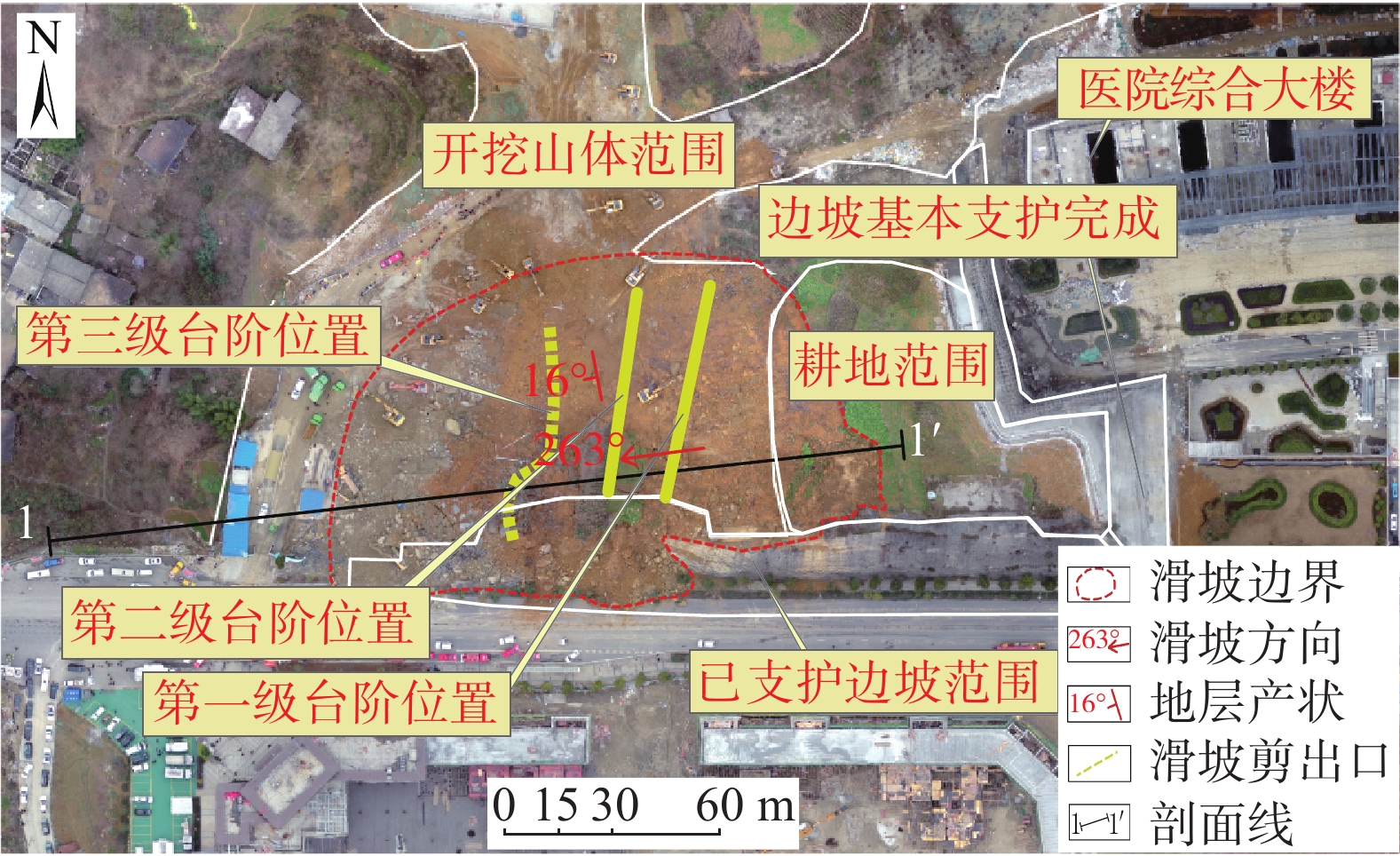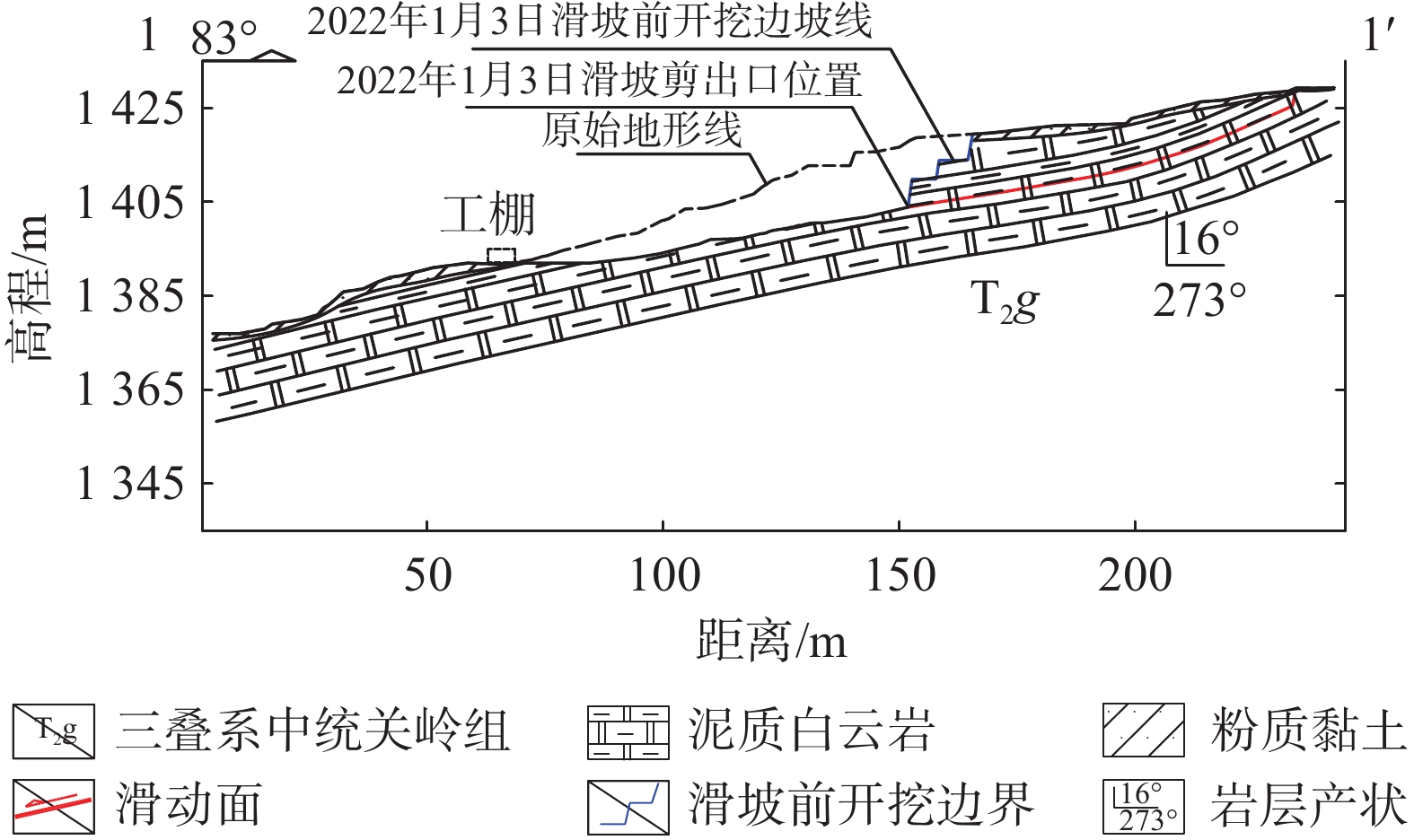 rd, 2022, a bedding landslide disaster occurred in Guihua street, Jinhaihu newly liberated area, Bijie City, Guizhou Province, with a volume of about 3.5×10