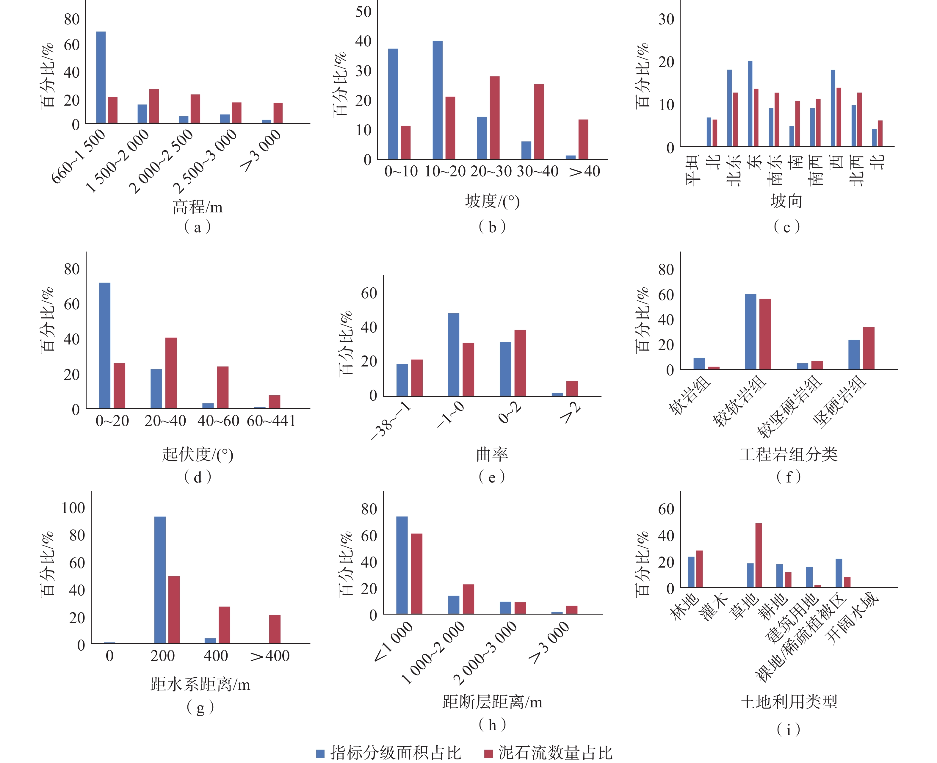 • 摘要: 以东川泥石流为研究对象,选取高程、坡度、坡向、起伏度、曲率、工程岩组、距断层距离、距水系距离、土地利用类型9个影响因子,以研究区144条泥石流为样本数据,建立了东川泥石流易发性评价体系。基于GIS平台,采用信息量模型计算各个评价指标状态分级的信息量值,以小流域为评价单元使用自然间断法将研究区泥石流易发程度分为极高、高、中和低4个易发区等级。结果表明:研究区极高易发区和高易发区发生泥石流灾害数量占比94.44%,AUC值为0.876,表明选取评价指标合理,信息量模型适用于东川泥石流易发性评价研究。