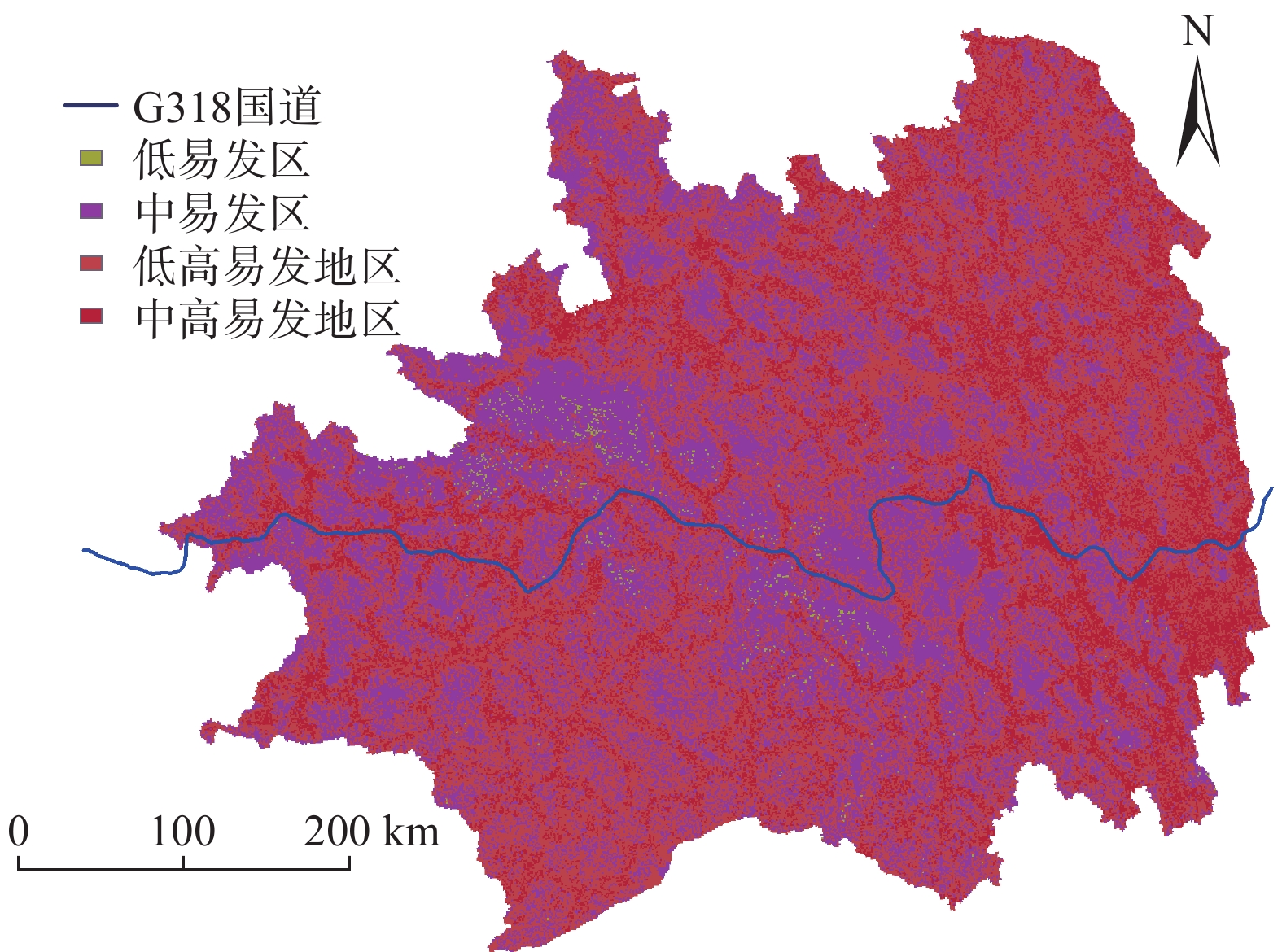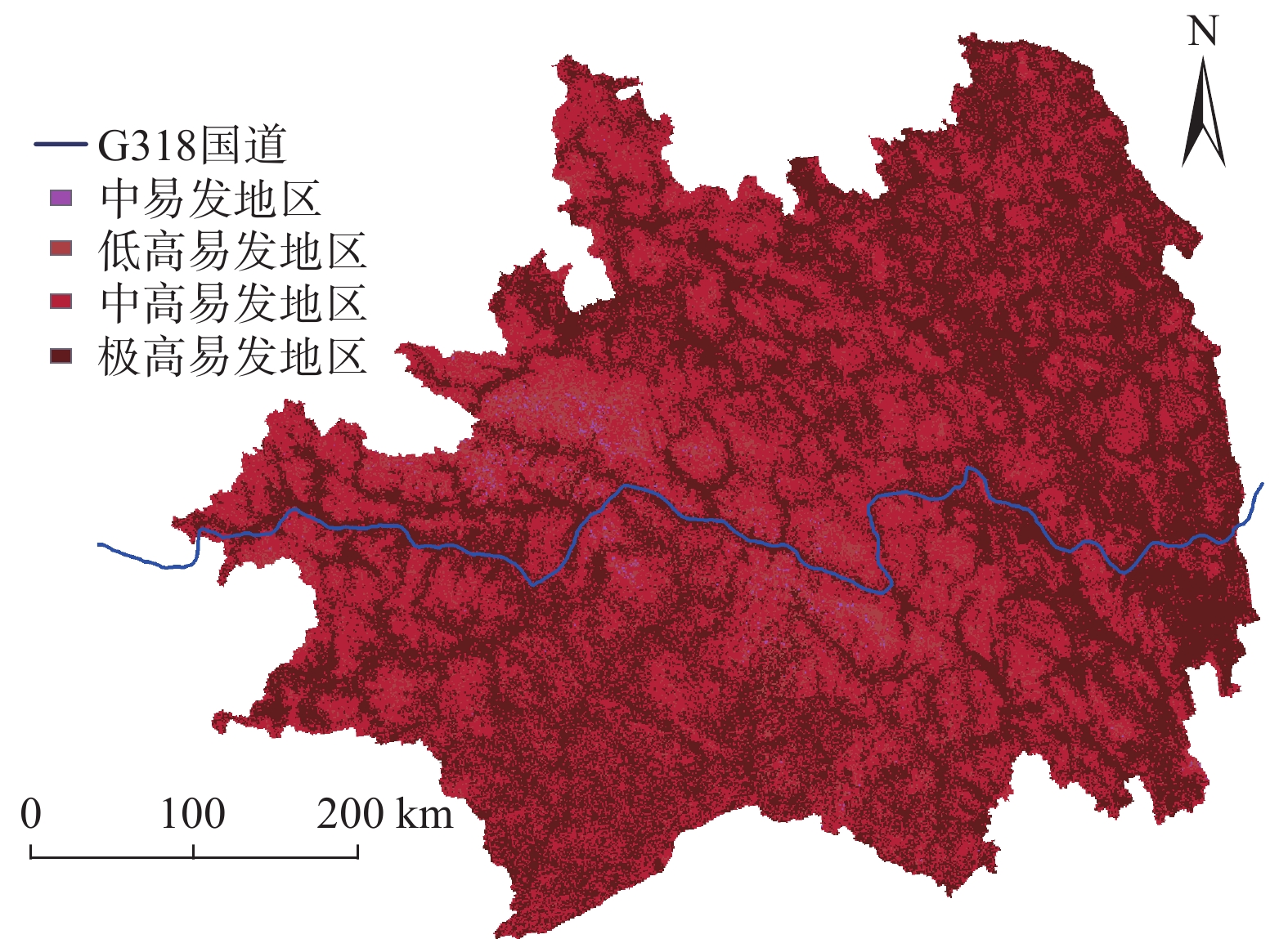 Southeast Tibet is an area with high frequency of debris flow, and also the place G318 pass through. Debris flow poses a serious threat to local social development and major engineering construction. In this paper, according to the conditions of southeast Tibet, 11 disaster-causing factors such as highway distance, watershed distance, fault distance, elevation, slope, rainfall and
