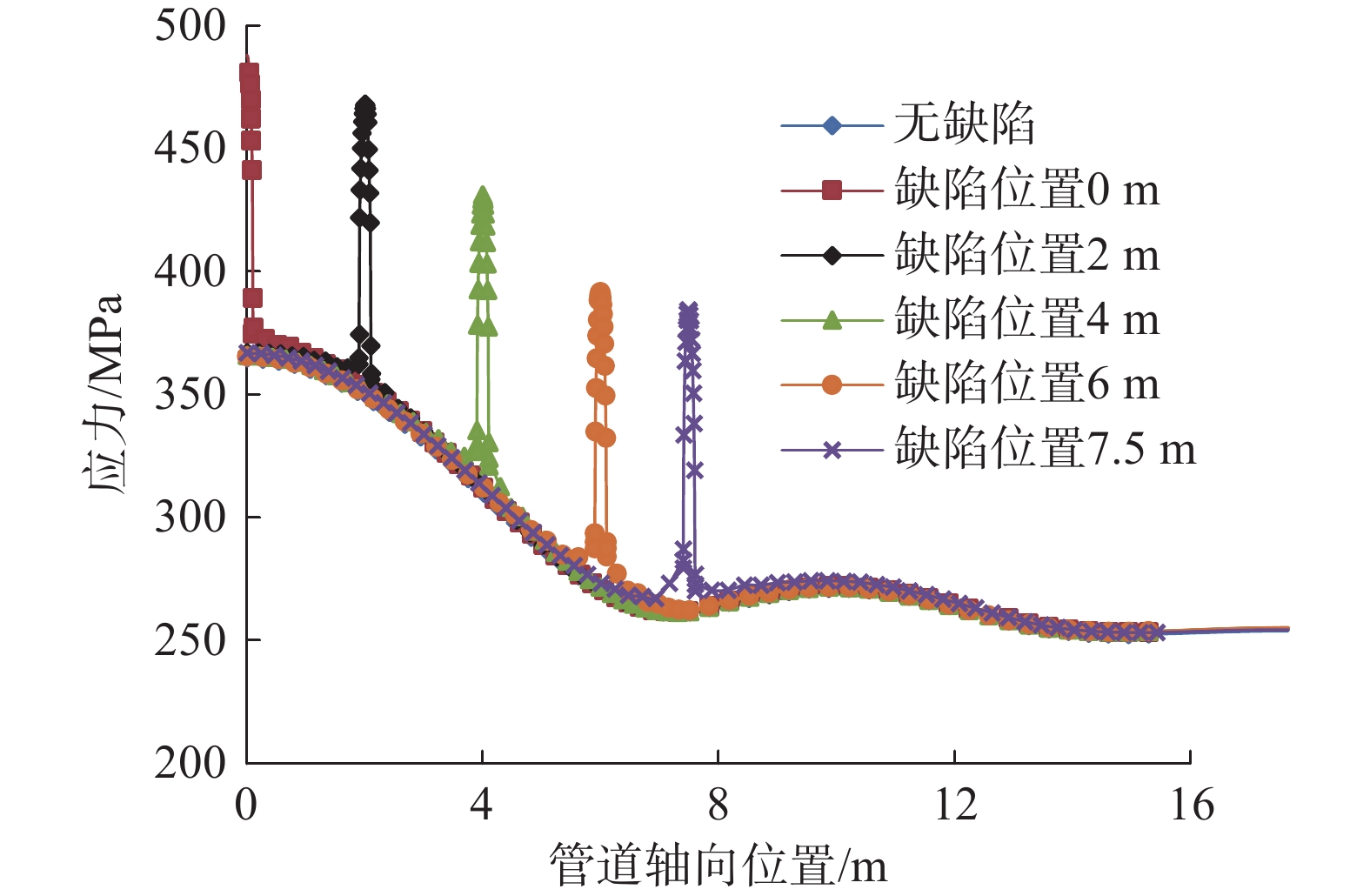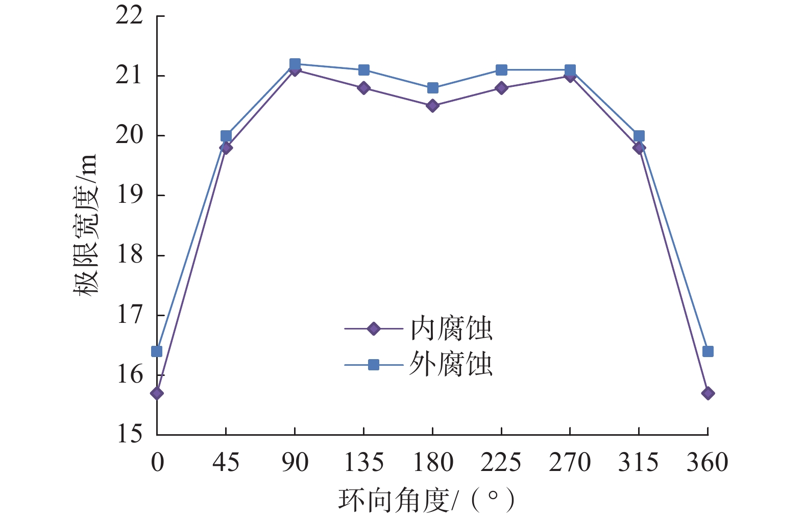 In view of the safety early warning problems involved in X80 corroded pipeline crossing landslide, it is proposed to take the limit width as the discrimination factor of pipeline safety state, establish a finite element model according to the specific landslide conditions, to analyze the influence of different corrosion sizes and spatial positions of pipeline on the mechanical behavior and limit width of corroded pipeline. The results show that the limit width can be used to evaluate the safety state of pipeline. The width and depth of corrosion are negatively correlated with the ultimate width of pipeline, and show high sensitivity to corrosion depth; the influence of internal corrosion on pipeline safety is greater than that of external corrosion; under the soil landslide with a slope of 30°, the critical cross landslide width of the non-corrosive X80 pipeline with an outer diameter of 10.16 cm is 21.2 m, and the critical corrosion depth of the corrosive pipeline crossing the landslide is 0.25 times the wall thickness; when the distance between the corroded pipeline and the middle of the landslide area is greater than 6 m, the influence on the limit width of the pipeline can be ignored; the pipeline stress is negatively correlated with the limit width. When the corrosion depth is 0.2 times the wall thickness, the maximum stress of the pipeline is always at the corrosion position, and the stress at other positions is consistent with that of the non-corrosive pipeline.
